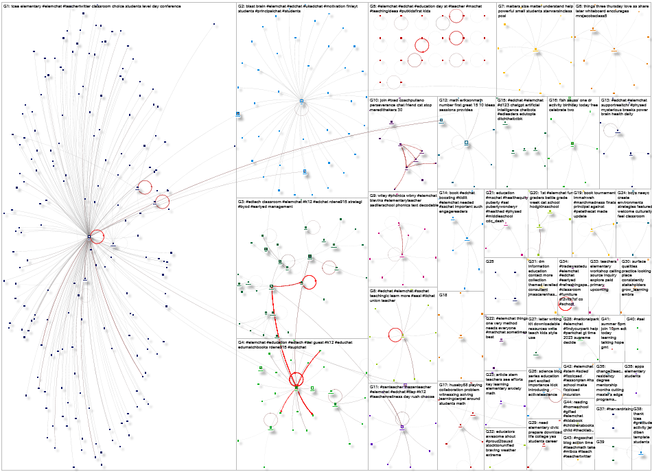 #elemchat Twitter NodeXL SNA Map and Report for Wednesday, 05 April 2023 at 02:43 UTC