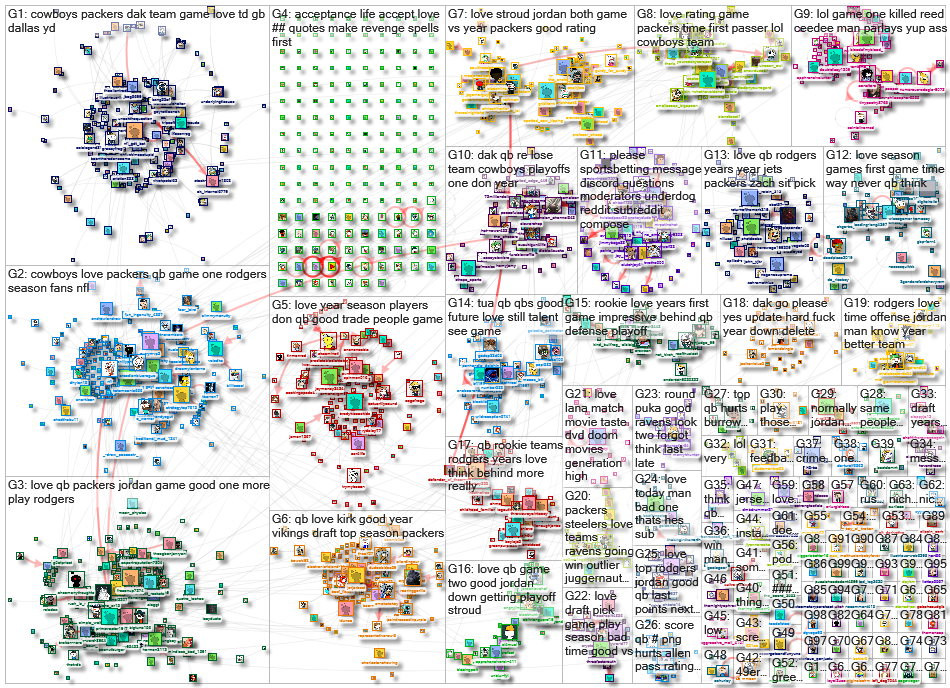 jordan love Reddit NodeXL SNA Map and Report for Monday, 15 January 2024 at 14:22