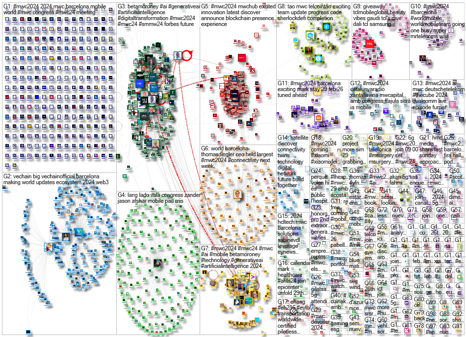 #MWV24 OR #MWC2024 Twitter NodeXL SNA Map and Report for Tuesday, 27 February 2024 at 04:56 UTC